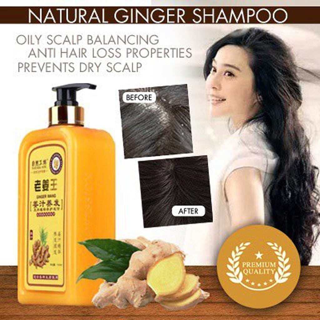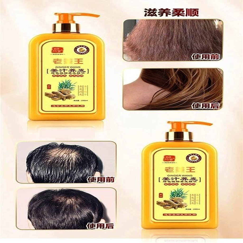[1000ml] 1+1 Bundle Ginger Hair Shampoo Growth Anti-Hair Loss by Lao Jiang Wang
