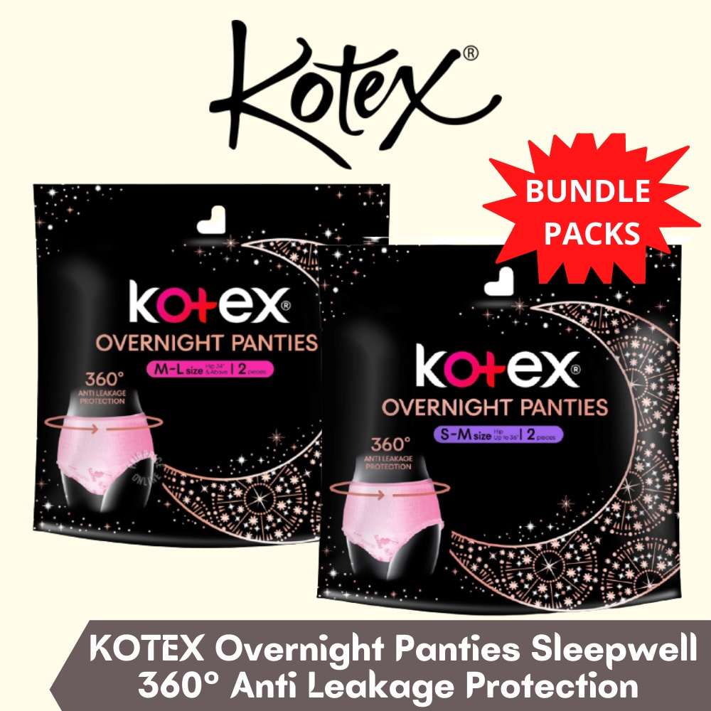 [CARTON DEAL]KOTEX Regular/Herbal Overnight Panties Sleepwell 360° AntiLeakage Protection(2pcs/pk) Panty Sanitary Pad