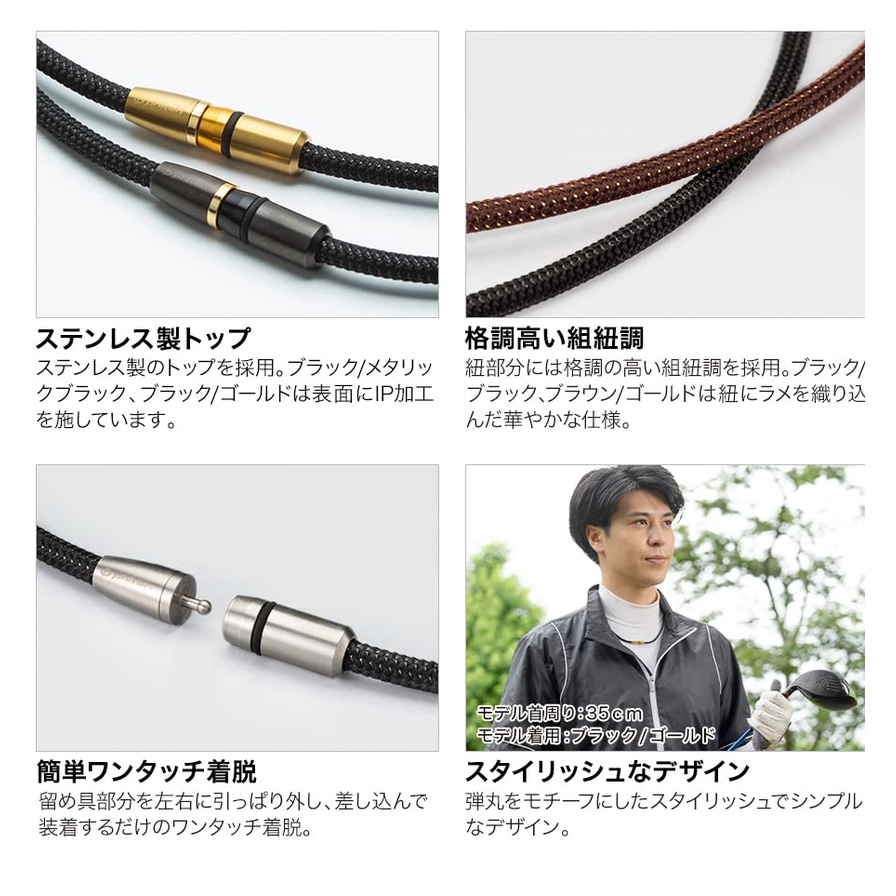 [Direct from Japan] phiten Necklace RAKUWA Magnetic Titanium Necklace BULLET Black / Metallic Black 50cm [Stiff Shoulders] [Stiff Neck] [Stiffness Improvement] [來自日本的直接] Phiten項鍊Rakuwa磁鈦項鍊子彈黑色 /金屬黑色50