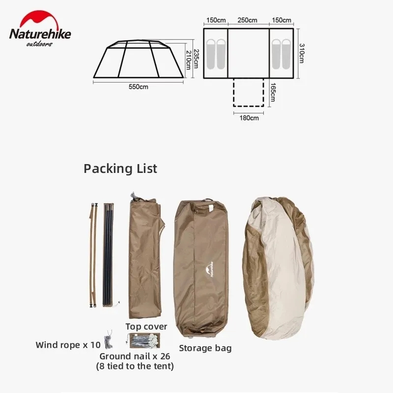 ???Ready Stock Naturehike Village 17 Outdoor Camping With 2 Foyer Automatic Tent Waterproof Sunscreen Large Space With 2 Room Quickly Open Tent