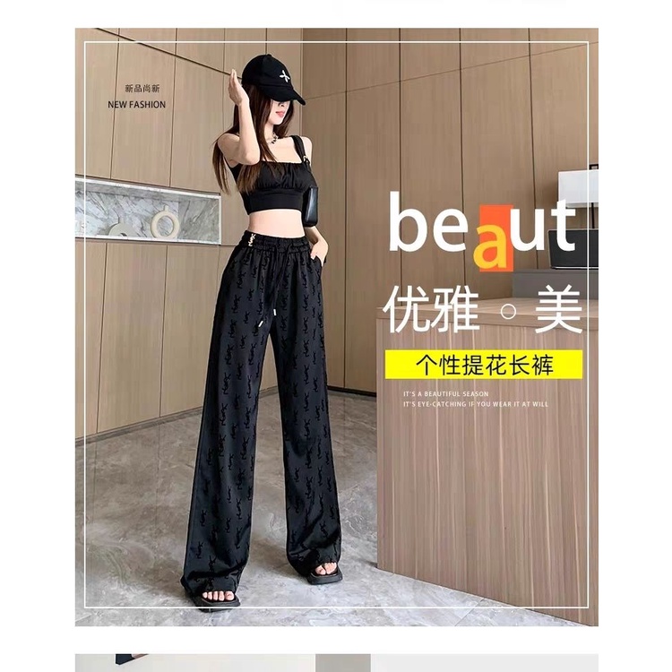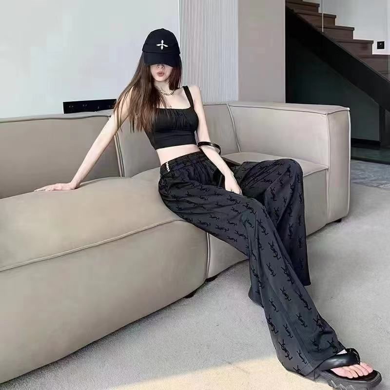 2023 New Acetate Silk Satin Ice Silk Summer Thin Pants Loose and Slim Straight Casual Pants for Women Hot Sale