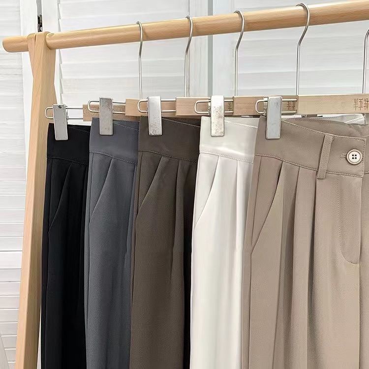 In stock Korean all-match solid color floor-length suit pants for women 2023 spring and summer new style drape temperament ins high waist suit wide pants loose slim mopping lengthened casual pants gen