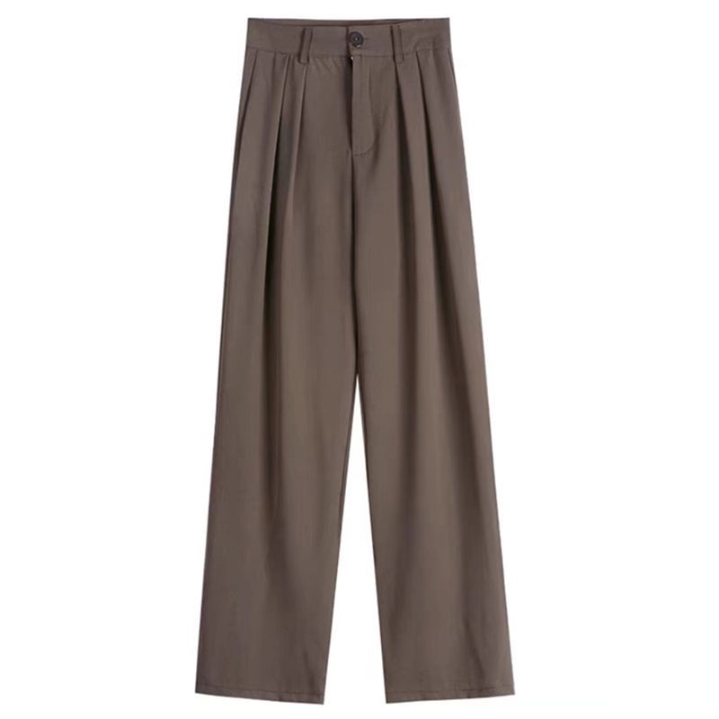 In stock Korean all-match solid color floor-length suit pants for women 2023 spring and summer new style drape temperament ins high waist suit wide pants loose slim mopping lengthened casual pants gen