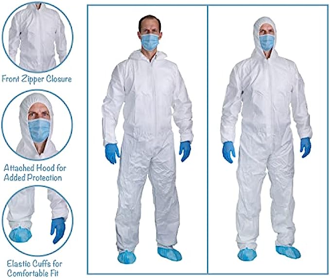 Provides full body protection. With elastic hood, elastic wrists and elastic ankles, the coveralls provide a snug fit, and reliable protection from harmful particles.