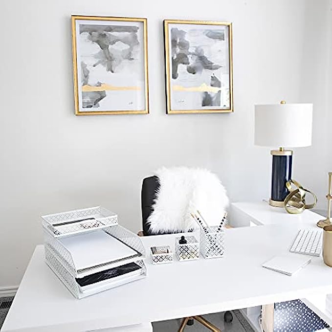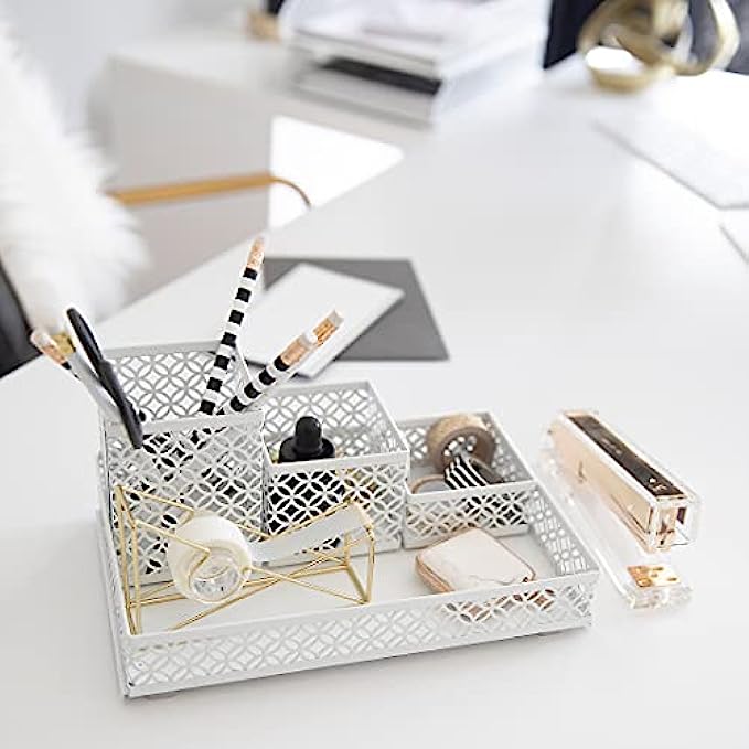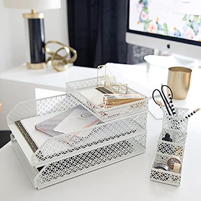 CHIC, FEMININE DESIGN: Ready to show off your personality with a file organizer desktop that makes cute room décor for teen girls? These desk accessories and desk organizer set will keep you organized while also looking great and feeling your best with its White metal construction for desk organizers and accessories for women.