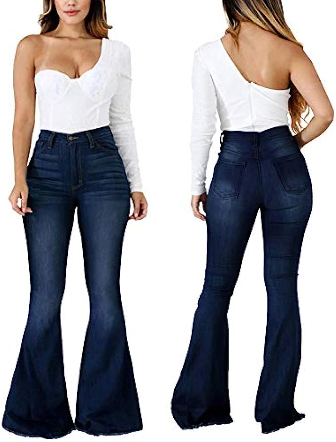 CuteCherry Bell Bottom Jeans for Women Ripped Skinny Bell Bottom Raw Hem Denim Pants