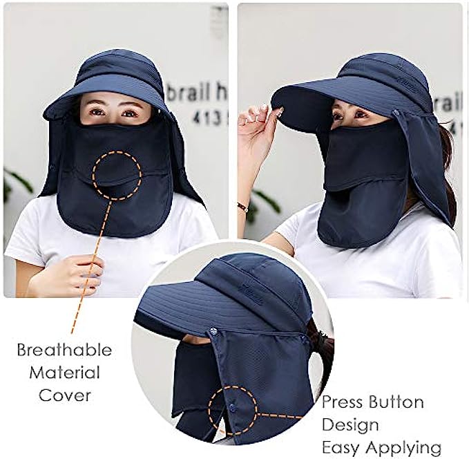 100% Polyester Buckle closure ⊙HIGH QUALITY MATERIALS: Premium polyester fabric. Not only provide UPF 50 protection for sun burn at outdoor activities, but also a great precaution at rainy days. ⊙360° PROTECTION: Comes with face and neck flap, full protection from the blazing sun. Extra wide brim provides wider shade but won’t block viewing. ⊙MULTI-FUNCTIONAL: Detachable top and flaps. Providing multiple wearing options to fit different needs. Light weight design, easy to carry around. Perfect for all kinds of outdoor activities like hiking, gardening, fishing. ⊙BETTER DESIGN: Draw string design to keep the hat in position at strong wind or heavy rain. Buckle button for quick releasing and applying. ⊙BEST SERVISES: 30 days no-question-asked money back protection by Yingzhe-International. Worry free purchase.