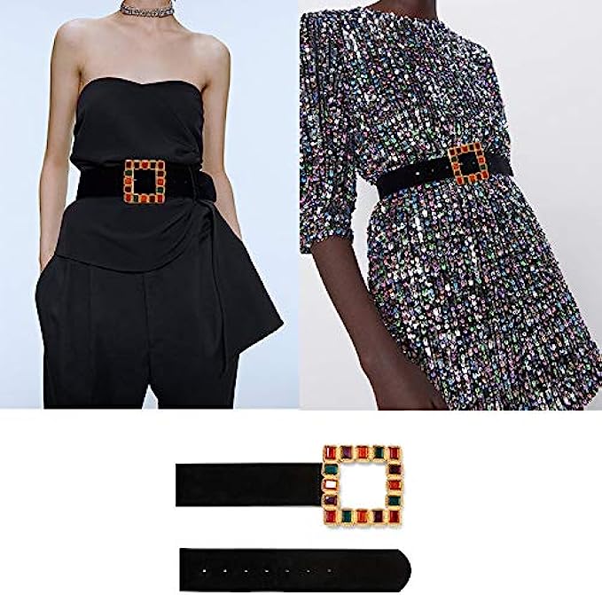 Leather,Velvet import Buckle closure Dry Cloth Clean ?[Novelty design]This statement belt is made of quality Velvet, it is durable and sturdy, not easy to deform and the color is not easy to fade, support you to use for a long time. ?[Size detail]Belt length 100cm size for waist 31-36",buckle width 2.04",proper size for you to wear.Please measure your waistline(include the clothes you want to match)to make sure the item fits before buying. ?All-Match On Trend Style:belts for women with a gorgeous buckle, it really makes a difference in the outfit. You will get lots for complements on this lovely belt!