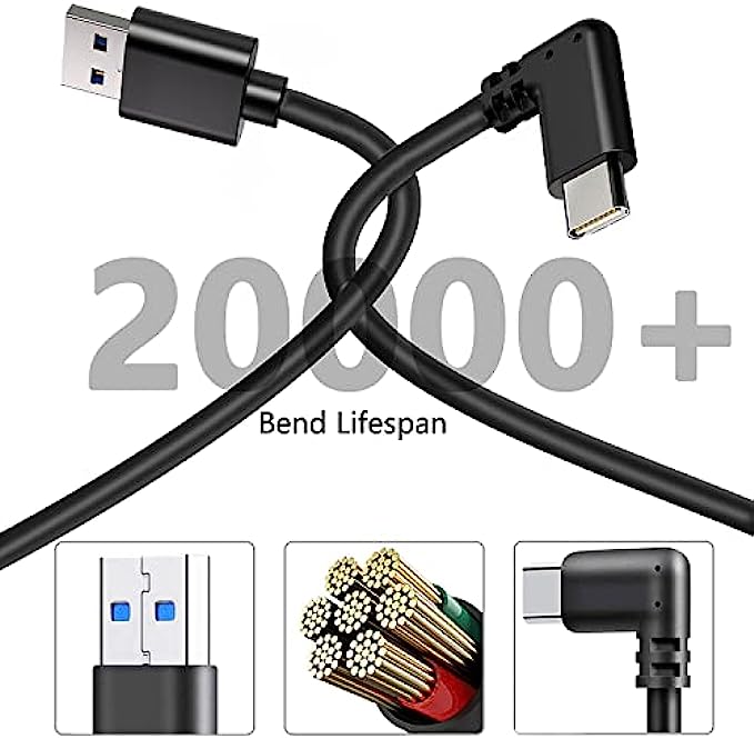 User Friendly Design - The Type C port with an L shaped / 90-degree design prevents it from disconnecting from Oculus Quest 2 easily.