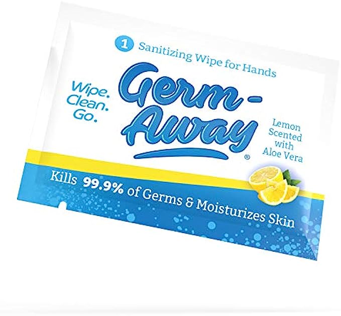 Germ-Away Large Antibacterial Hand Wipes Individually Wrapped Wipes, Travel Size Hand Sanitzer Wipes with Aloe in Dispenser Box, 100 ct Lemon Scent