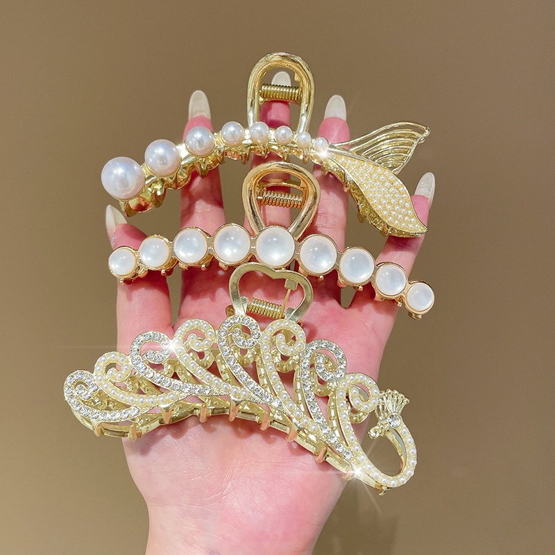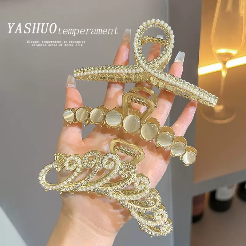 Korean Butterfly Flower Square Hair Claw Clips Opal Pearl Crystal Fishtail Cross Hairpin for Women Hair Accessories