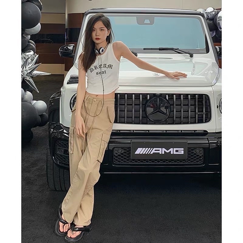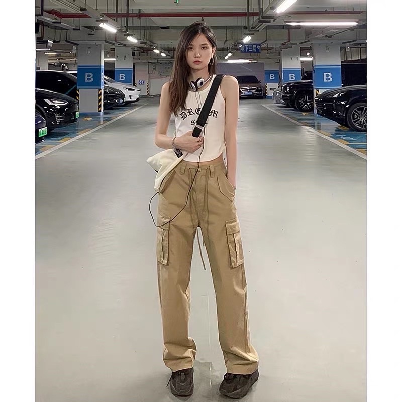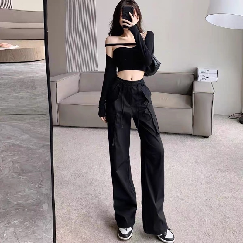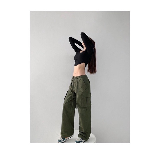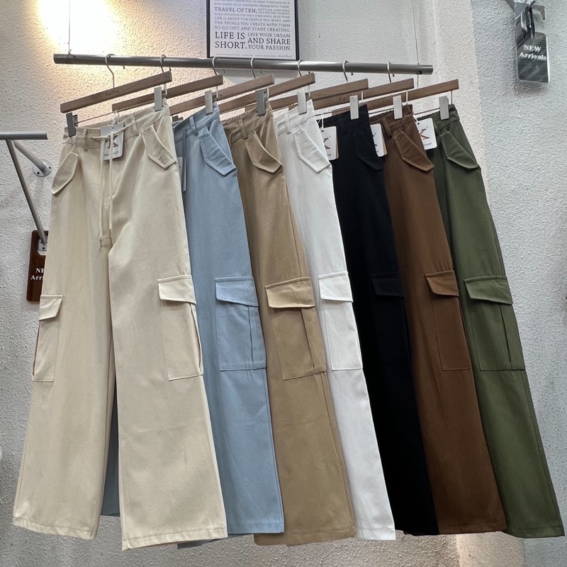 NEW No.8535 High-Waisted Cargo Pants With Drawstring Camouflage Shape!! Very Popular Now Keltis Signage Work.