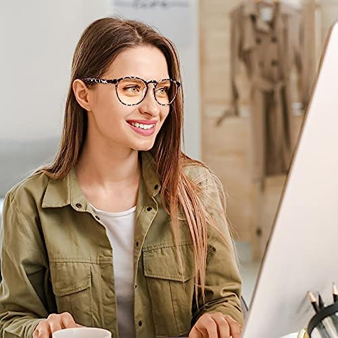 SIMPLE YET CLASSIC ELLIPSE DESIGN - Without complicated patterns and strange designs, PAZELY presents you with the ultimate simplicity of classic fashion. This blue light glasses is suitable for both men and women. The simple ellipse lens shape and 4 pairs frame can be matched with different looks, suitable for various daily and formal occasions.