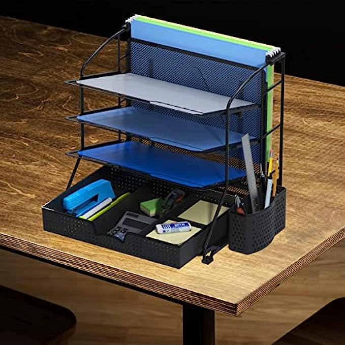 • Perfect solution for organizing your documents with space to store stationery and desk accessories