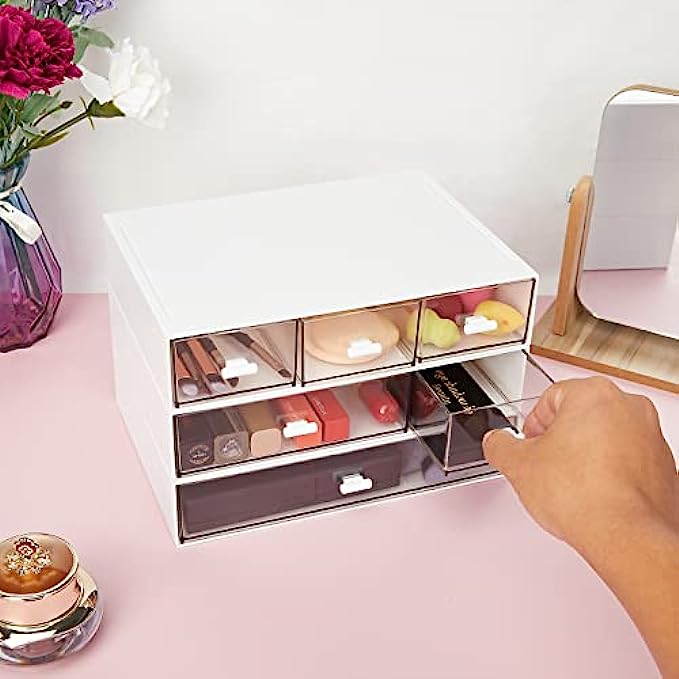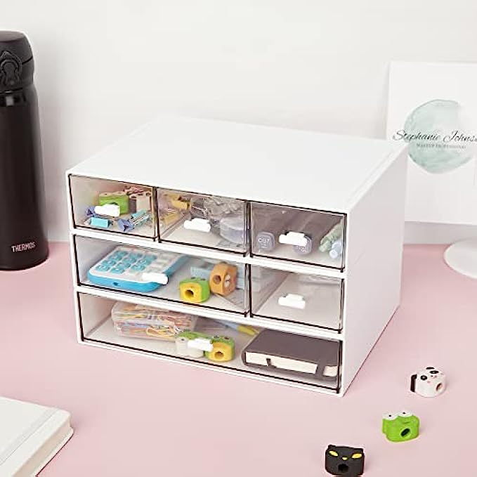 • PERFECT SIZE - 8.8*6.5*1.7inch/22.5*16.5*4.3cm, elegant look, it fits easily in the desk. clear drawers design easy to see through and keep everything in order and easy to access