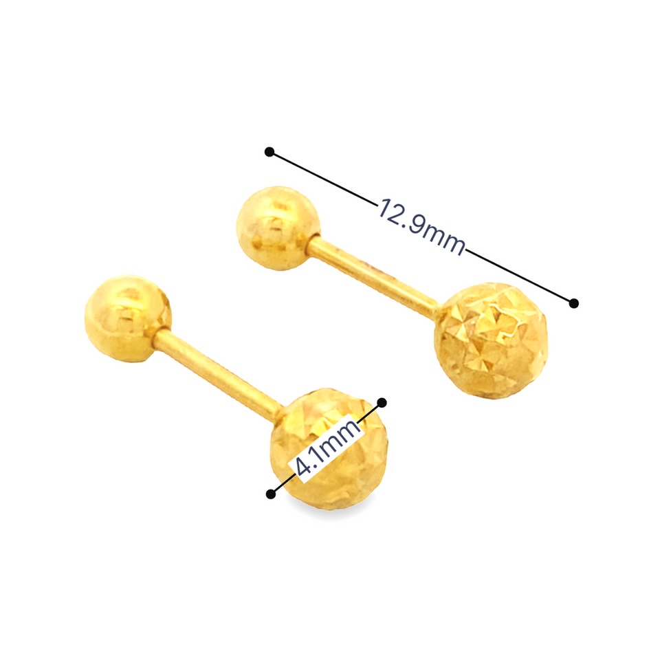 Top Cash Jewellery 916 Gold Simple Design Ball Screw Earrings