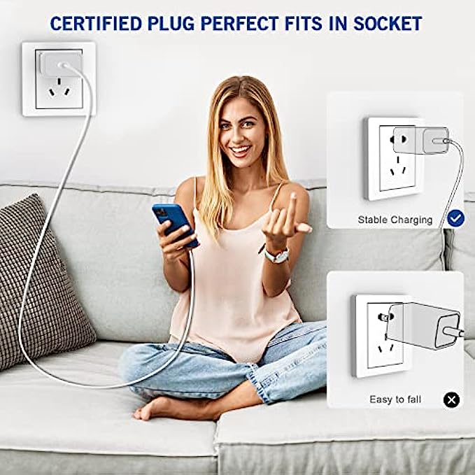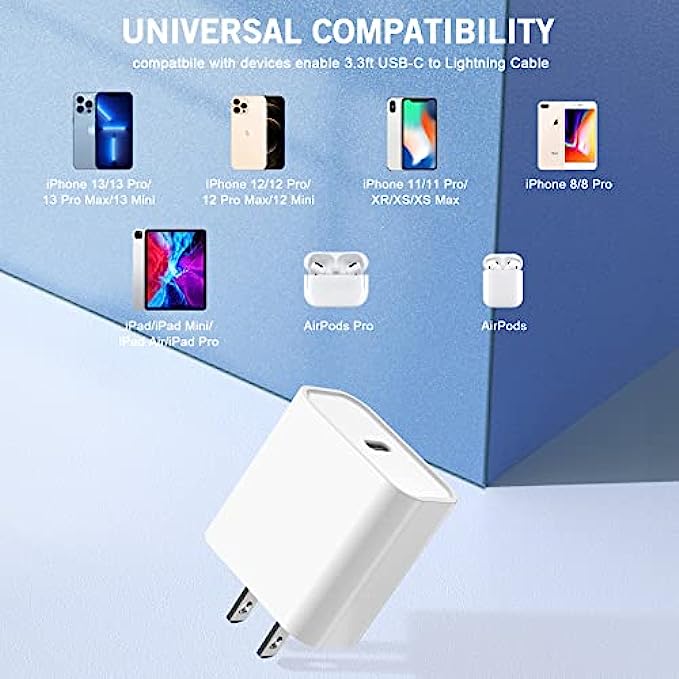 【Universal Compatibility】This new upgraded iPhone 12 Charger offers fast charging for iPhone 13 Pro Max/13 Pro/13/13 Mini/12 Pro/12/12 Mini/11/11 Pro/11 Pro Max/XS Max/XS/X/XR/8 Plus/8 , iPad Pro/ iPad Air/ iPad, AirPods Pro. Standard Charging Speed for iPhone 7/7 Plus/6s/6s Plus/6/6 Plus/SE/5s/5/5c.