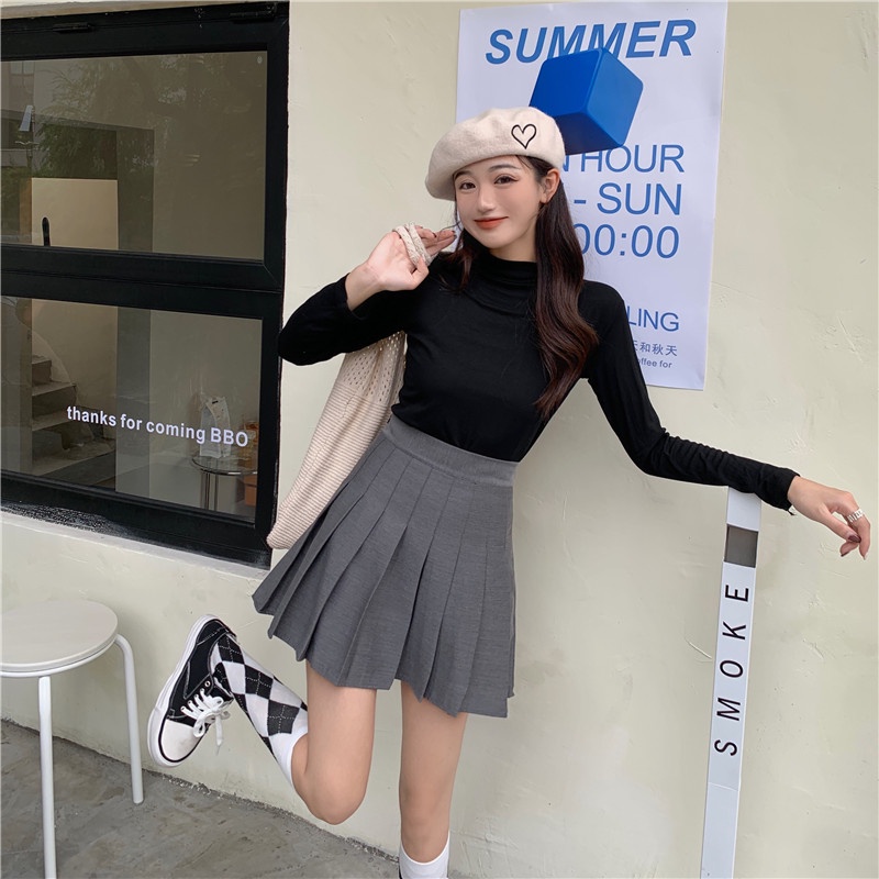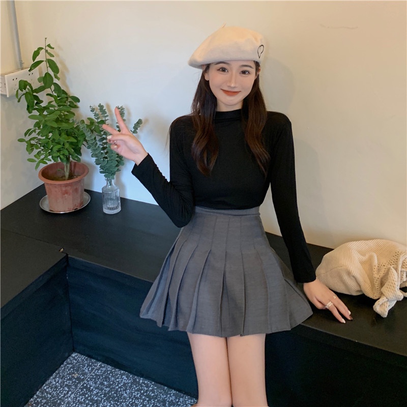 Mili??Shop now?College style pleated skirt~High waist slim pleated skirt/high waist skirt/A-line skirt/short skirt