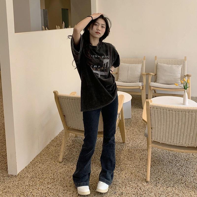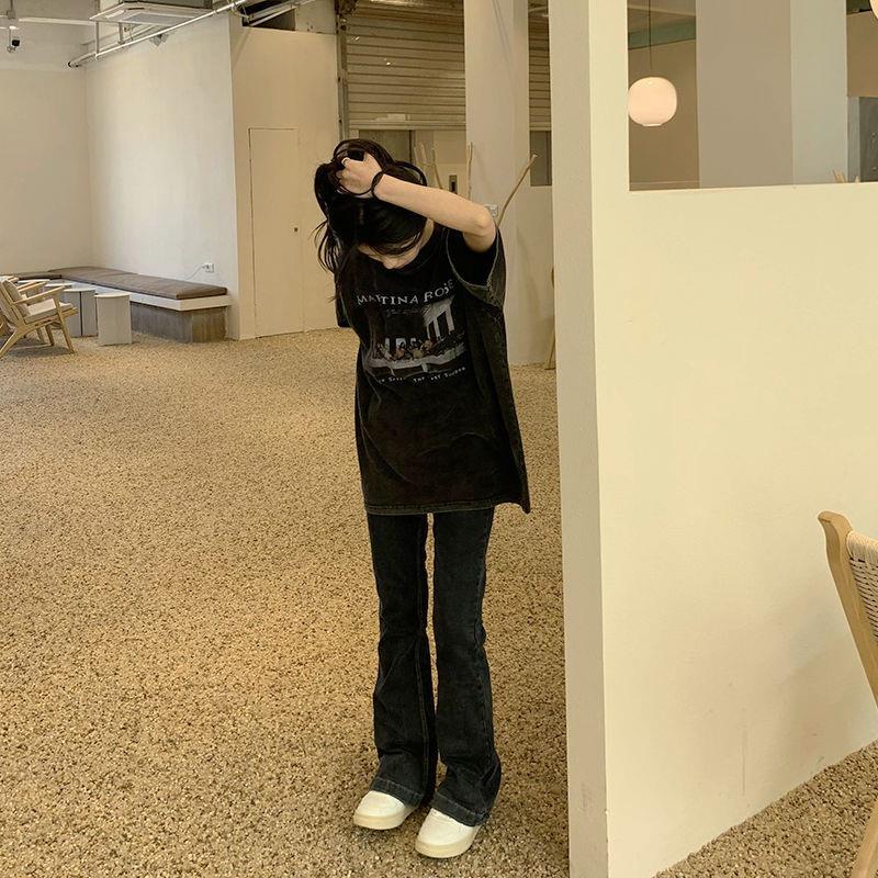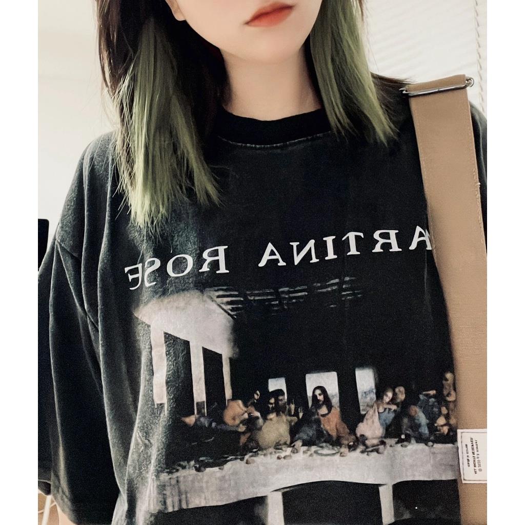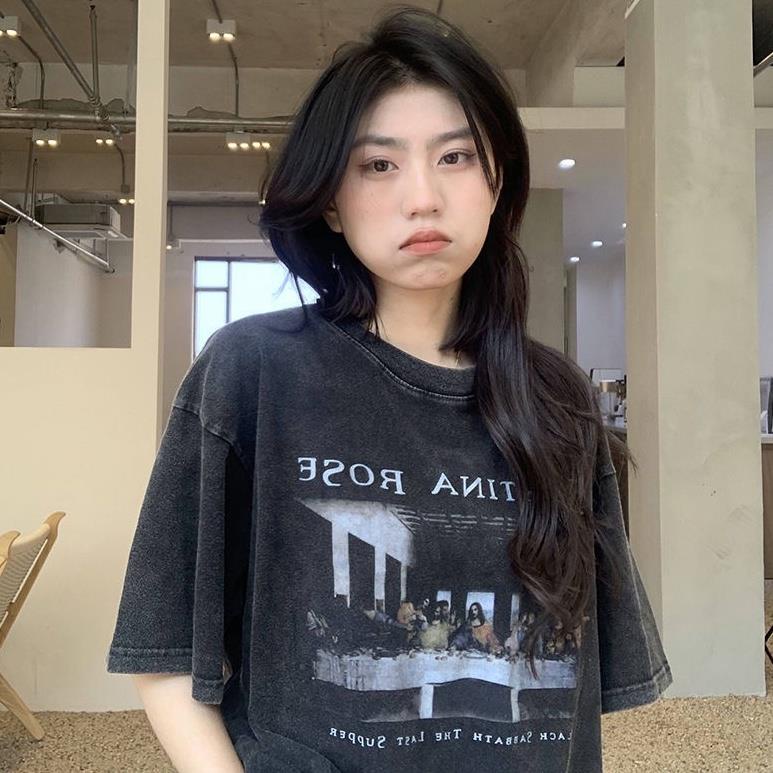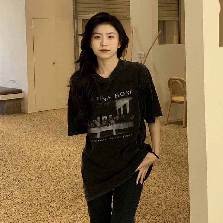 TGNS washed distressed short-sleeved T-shirt short-sleeved top American retro ins style oversize loose short t summer clothes clothes for women