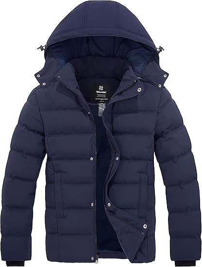 Wantdo Men's Hooded Winter Coat Warm Puffer Jacket Thicken Cotton Coat with Removable Hood